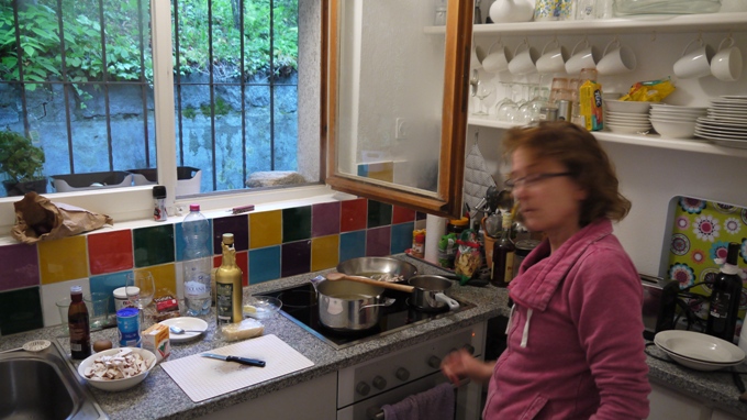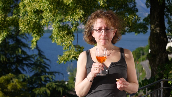 Irgendwann hatte er sich wieder beruhigt und lag uns zu Füßen, stand wieder auf, legte sich wieder hin, stand wieder auf, ging in die Küche, legte sich wieder hin, guckte ins Wohnzimmer (wo wir saßen), guckte ganz treu – es kam ein *hualp* und er kotzte spie eine Art Auster auf den Parkettboden. Die arme Sharon musste (Augen zum Himmel verdrehend) diese Auster – oder was es auch war – entfernen… Buah. Ich trank noch schnell einen (oder zwei) Grappa und wir gingen zum Hotel zurück.