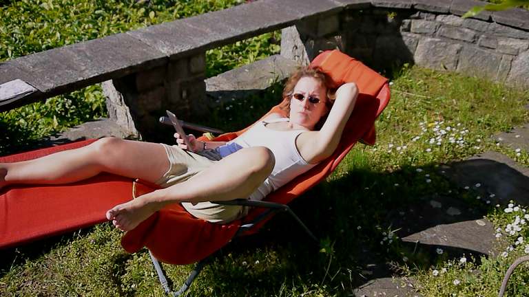 Spaziergang zum Auto (20 m). Zum Haus der Familie Renold.
